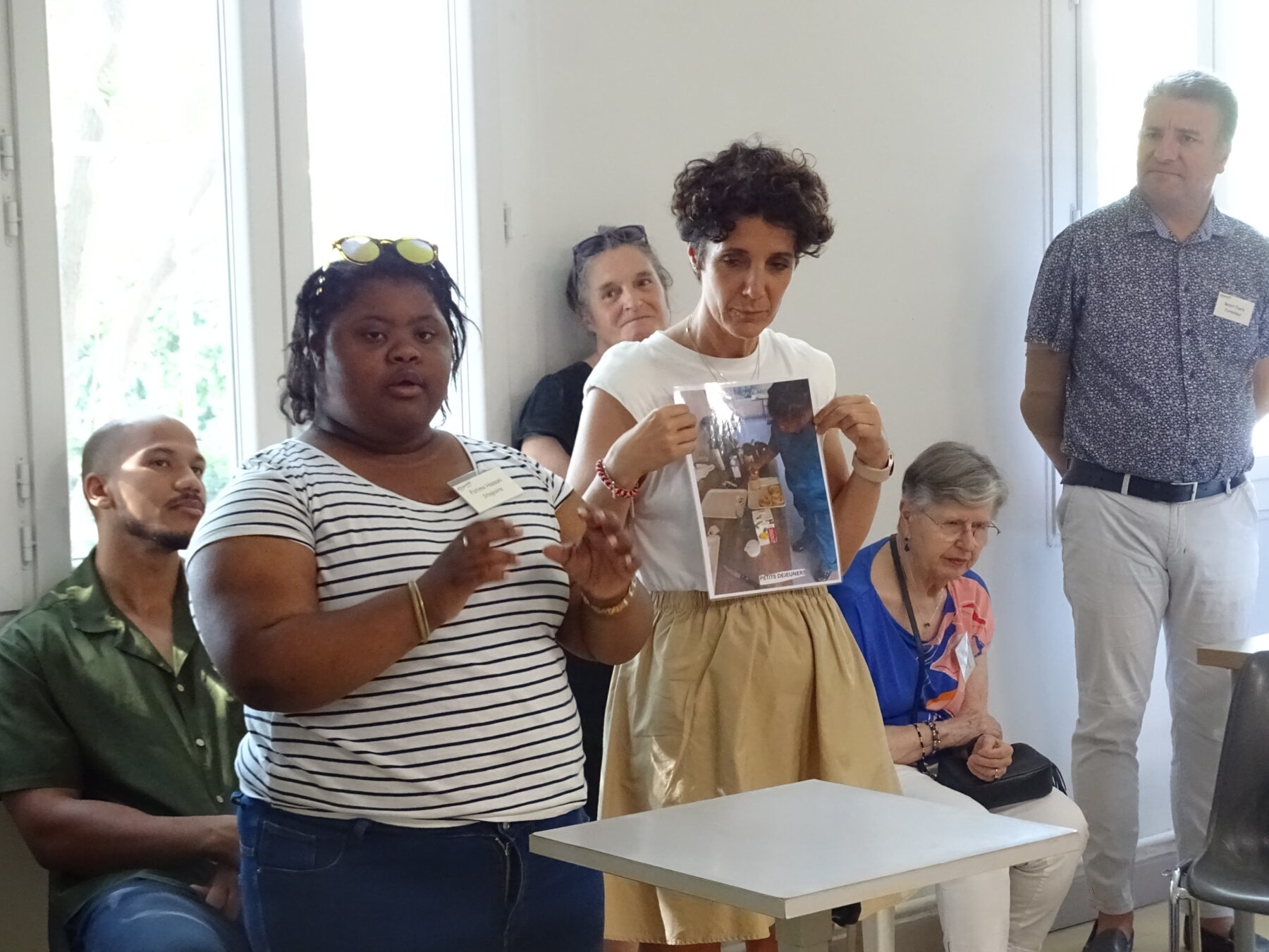 présentation par Nassima, salariée dans l'entreprise en CDI de son travail, en présence de son tuteur d'entreprise et de son employeur Mme FULLEDA